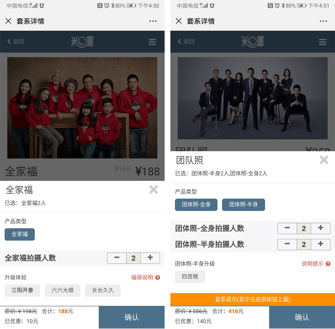1.3、多選可減價格,如證件照選擇多種背景色減價。