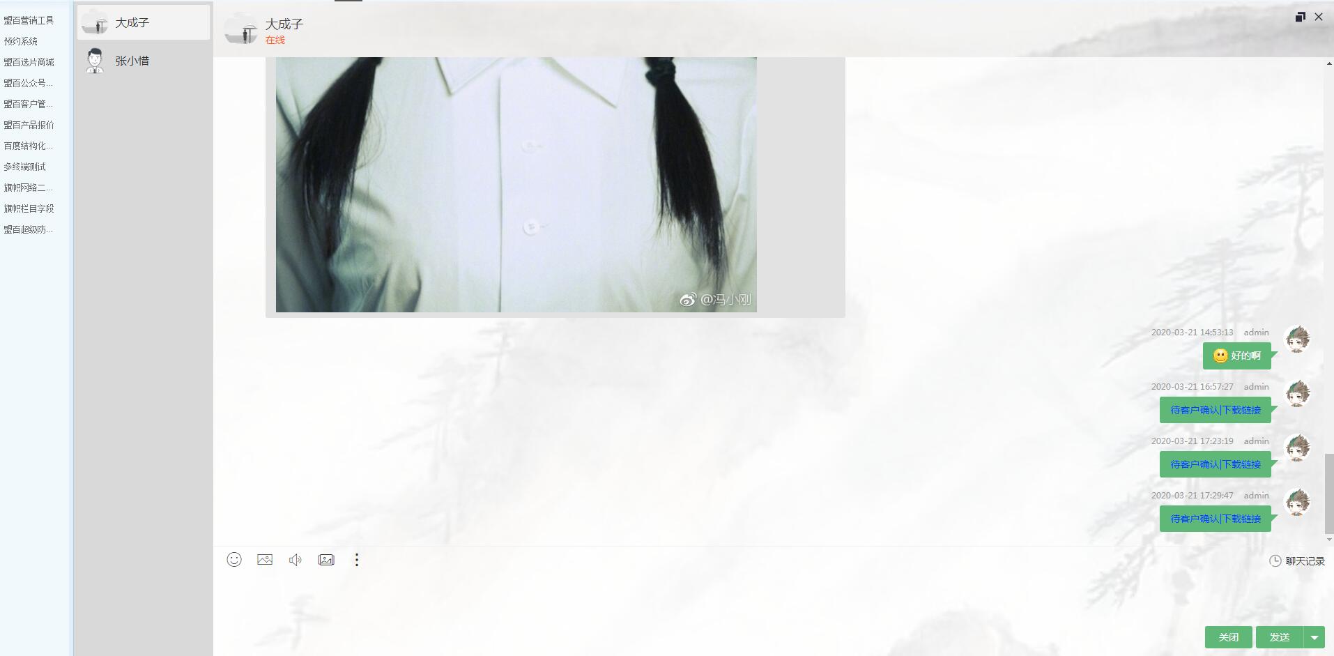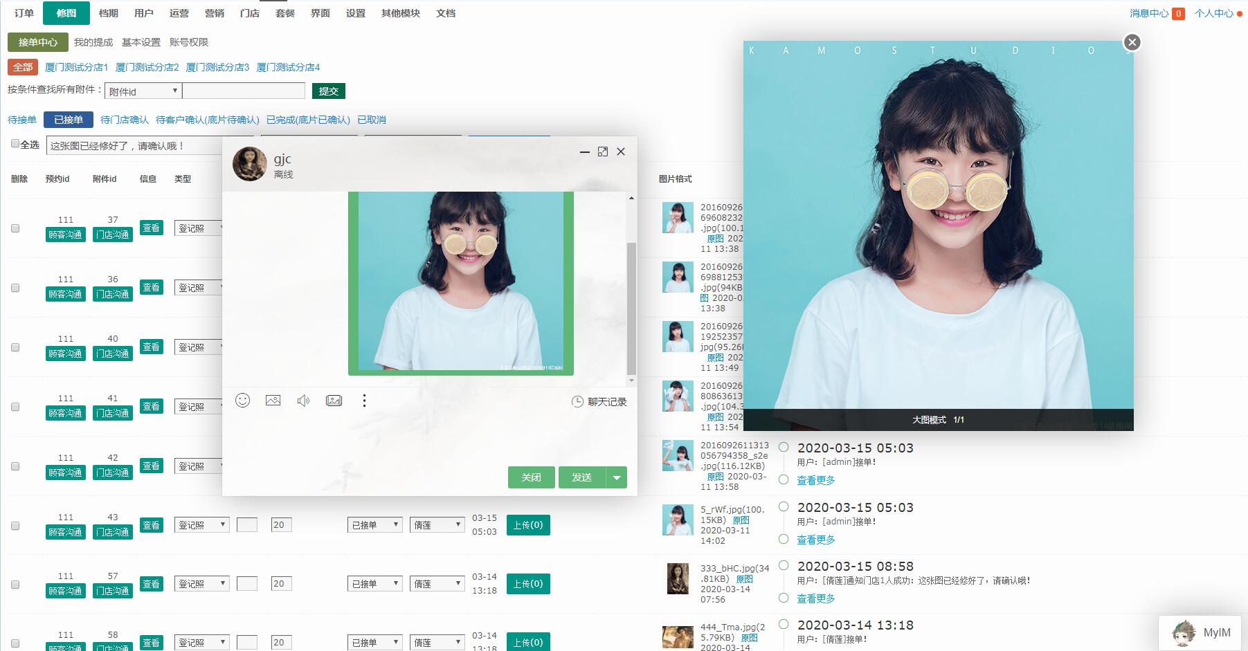 ?距上次更新公眾號(hào)2020.02.22(查看)已經(jīng)一個(gè)月了,這次主要內(nèi)容更新有:盟百即時(shí)溝通im更新至2.0版本、修圖中心新增直播功能、新增視頻模塊及優(yōu)化后臺(tái)。 即時(shí)溝通im2.0版 至1.0版19年11月開發(fā)完成后,就開始著手開發(fā)2.0版(兼客服功能)。歷經(jīng)三個(gè)月多。終于完工了,雖然是溝通工具更像是一個(gè)工作臺(tái),它可以發(fā)送表情、本地圖片、底片、底片下載鏈接、常用語快速回復(fù),也可以上傳底片、提醒對(duì)方上線、更改底片分類、兼用戶組及客服功能,同時(shí)支持pc端和手機(jī)端。實(shí)現(xiàn)了門店與顧客、修圖中心與顧客、門店與修圖中心的PC端和手機(jī)端的溝通。支持實(shí)時(shí)顯示對(duì)方是否在線,支持離線消息推送,不在線時(shí)有用戶留言,登入后臺(tái)會(huì)有聲音提示及底部抖動(dòng)提示,支持后臺(tái)用戶自定義聊天提示音(50種可選)、頭像、簽名等等功能。先看看它的界面: 【聊天面板】:可自動(dòng)獲取客戶訂單底片。可隨意移動(dòng)面板。 【主面板】:支持設(shè)置用戶組。方便同事間的溝通,列出最近聯(lián)系人。主面板固定在頁面的右下角,可最小化,如下圖: 【主面板最小化】:后臺(tái)用戶可根據(jù)需要可設(shè)置默認(rèn)展開或者最小化,顯示在頁面的右下角。 【臨時(shí)消息提示條】未打開聊天面板時(shí)用戶消息提示。有消息時(shí)顯示在頁面的底部正中間。 [支持]所有面板在后臺(tái)所有頁面顯示。除了主面板,其它面板均可隨意拖動(dòng)到別的位置。聊天面板支持最大化。如下圖: [支持]后臺(tái)用戶(賬號(hào)數(shù)量不限,一般一個(gè)員工一個(gè)賬號(hào))可自定義項(xiàng)有:用戶頭像、簽名(僅同事間可見)、聊天的提示聲音(50種可選見下圖)、主面板是否最小化、對(duì)方上下線提示、自定義快速發(fā)送內(nèi)容。 [支持]用戶可發(fā)送內(nèi)容有:表情、文字、本地圖片、快速回復(fù)內(nèi)容、底片及下載鏈接等,支持批量上傳底片、更改底片類別等。底片面板如下圖。增刪改查都有。 門店與顧客或者修圖中心與顧客管理底片面板 門店與修圖中心管理底片面板 [支持]手機(jī)PC端均支持本地圖片上傳,手機(jī)端采用微信接口,與微信發(fā)送給朋友一樣,一次最多上傳9張,大小不限。 [支持]所有圖片(聊天窗口和底片面板)點(diǎn)擊圖片可放大。手機(jī)端如微信。PC端可隨意拖動(dòng)圖片,如下圖: [支持]PC端支持按鍵盤Enter或者Ctrl+Enter健發(fā)送內(nèi)容,如下圖: [支持]PC和手機(jī)端均支持聊天記錄,可設(shè)置聊天記錄保存時(shí)長,最多可保存40天,可刪除某個(gè)員工賬號(hào)的聊天記錄,可清空所有人的聊天記錄。手機(jī)端聊天記錄采用下拉刷出來,如微信,PC端點(diǎn)聊天記錄會(huì)出現(xiàn)在右側(cè),如下圖: [支持]顧客和商家均可提醒對(duì)方上線(微信公眾號(hào)提醒)。商家賬號(hào)PC端還會(huì)有底部抖動(dòng)、聲音、消息中心及主面板中的消息盒子三種提示,如下圖: [支持]離線推送,用戶不在線時(shí),如有新消息內(nèi)容,該賬號(hào)進(jìn)入后臺(tái)可收到消息,聲音及底部新消息抖動(dòng)提示。若與多人聊天時(shí),聊天面板也會(huì)收抖動(dòng)提示。 [支持]主面板顯示最近聯(lián)系人(手機(jī)端也支持)及聊天面板多人聊天如下圖: [支持]可設(shè)置需要門店開通im的分店,即后臺(tái)訂單發(fā)起與顧客溝通 [支持]可設(shè)置修圖中心需要開通im的分店,即后臺(tái)修圖中心發(fā)起與顧客溝通 [支持]可設(shè)置賬號(hào)是否有PC端或手機(jī)端的溝通權(quán)限。 [支持]可設(shè)置聊天內(nèi)容的背景色、pc及手機(jī)的接收聲音。 [支持]可設(shè)置用戶組及手機(jī)端可選是否顯示用戶組。 [支持]選擇性開通客服功能,可選顯示在全局頁面右下角還是自定義位置。客服人員人數(shù)不限,默認(rèn)客服人員(即用戶進(jìn)來默認(rèn)與哪個(gè)客服溝通)可指定一個(gè)人或者隨機(jī)。全局頁面右下角如下圖: 視頻模塊 這個(gè)系統(tǒng)更新至 v3.1.0了,也開始支持視頻類的預(yù)約了,隨著短視頻的火爆,有些人已經(jīng)不僅僅只想拍組照片了。 視頻服務(wù)器采用CDN加速,用戶通過最近的節(jié)點(diǎn)播放視頻,達(dá)到秒開不卡頓,并邊播邊緩存,循環(huán)播放不用重新加載,節(jié)省了用戶流量。 [支持]視頻分類,統(tǒng)一上傳管理,需要的頁面調(diào)用即可。 [支持]上傳顯示時(shí)進(jìn)度條,測試235M大小69秒即可上傳完,目前最大可上傳5G,當(dāng)然我們不建議上傳那么大的。上傳完會(huì)自己顯示在列表最前面,且自動(dòng)轉(zhuǎn)碼多個(gè)清晰度,轉(zhuǎn)碼后大小為原片的30%~80%,自動(dòng)切換清晰度,如有卡頓會(huì)自動(dòng)切換低清晰度,默認(rèn)播放高清晰度的。 [支持]后臺(tái)支持在線播放(彈出框方式),上傳視頻封面。調(diào)用視頻進(jìn)也支持點(diǎn)播。 [支持]可設(shè)置播放器高度。 [播放器功能]暫停健、時(shí)間條,音量大小、全屏、0.5~2倍的實(shí)時(shí)變速功能等。目前僅套餐展示頁可添加視頻,之后將支持更多頁面,如首頁,套餐列表頁,照片類的圖片也僅在這幾個(gè)頁面展示。 修圖中心優(yōu)化 修圖中心于上個(gè)月發(fā)布(查看),本次更新了以下
