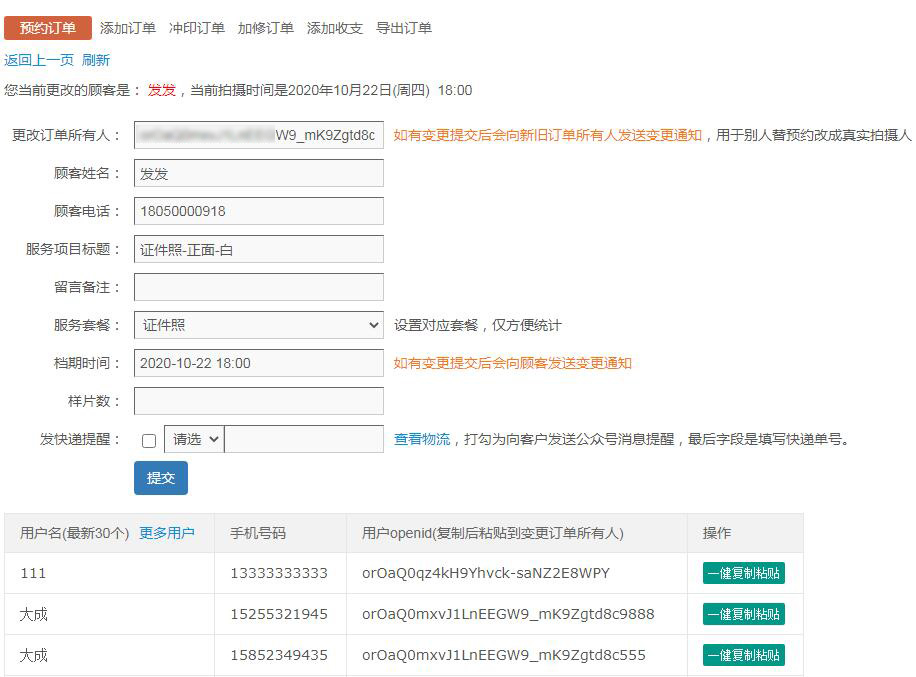 [新增]更改訂單所有人,并對新舊所有人公眾號消息提示,后臺更改檔期新增對用戶提示。