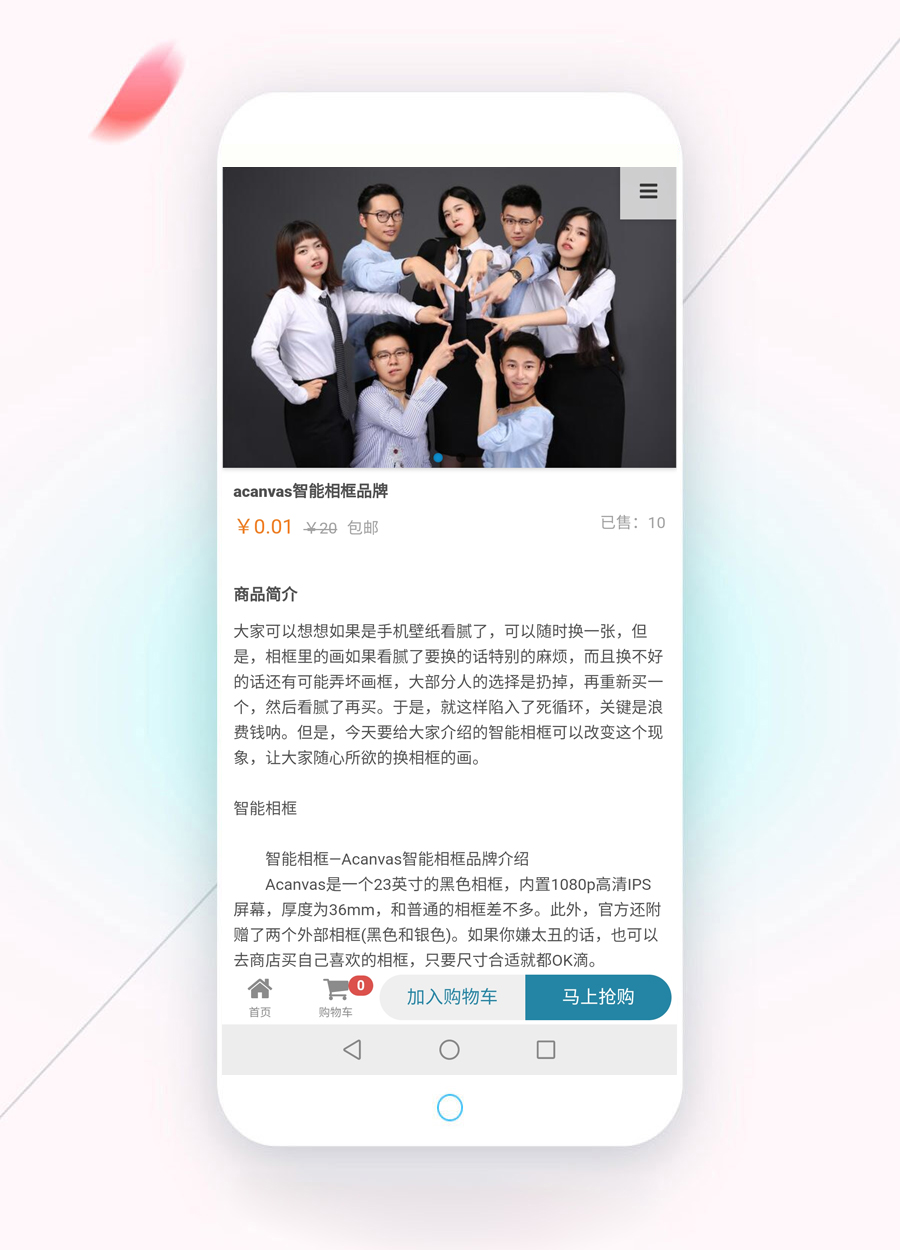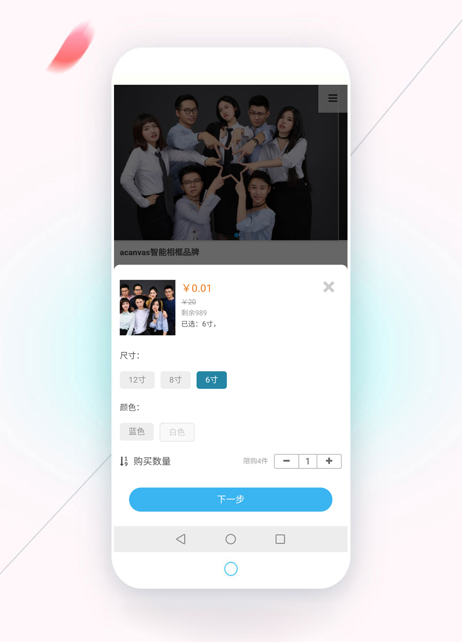 以上是產品展示頁,可設置產品規格、庫存、限購數量等。