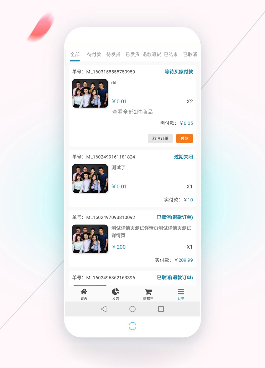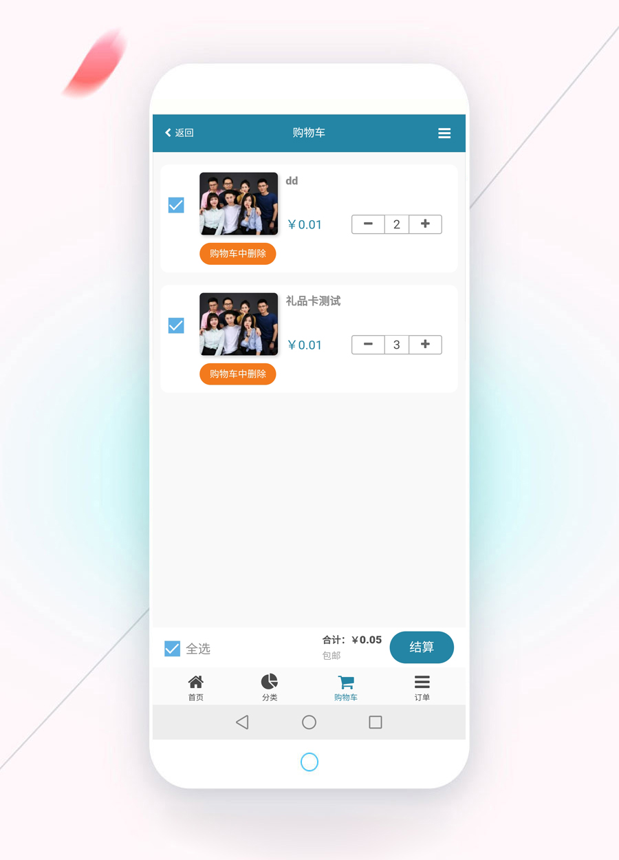 采用購物車方式,類似有贊商城,支持出售禮品卡,實物,虛擬產品,自定義界面,商品分類,商品規格,余額支付,取消訂單,退貨退款,發貨退貨物流跟蹤,快遞費設置,商品自動下架,可選取消訂單立刻退款和后臺手動退款等功能,前臺頁面包括首頁,分類列表頁,商品展示頁,購物車頁,訂單確認頁,訂單列表頁,訂單詳情頁。 所有頁面頂部均可設置:顯示頂部條、僅顯示右上角菜單、都不顯示這三種。不同頁面可設置不一樣。 頁面截圖: