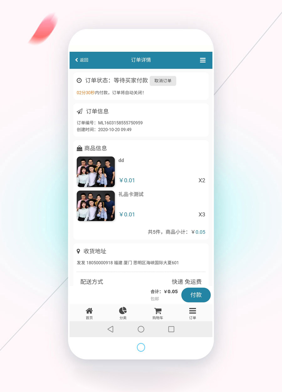 以上面訂單詳情頁,1小時內未付款自動關閉訂單,訂單詳情頁內包括信息有:訂單狀態、禮品卡信息、商品信息、退款信息(退款到余額或支付來源)、收退貨地址信息、物流跟蹤信息等。
