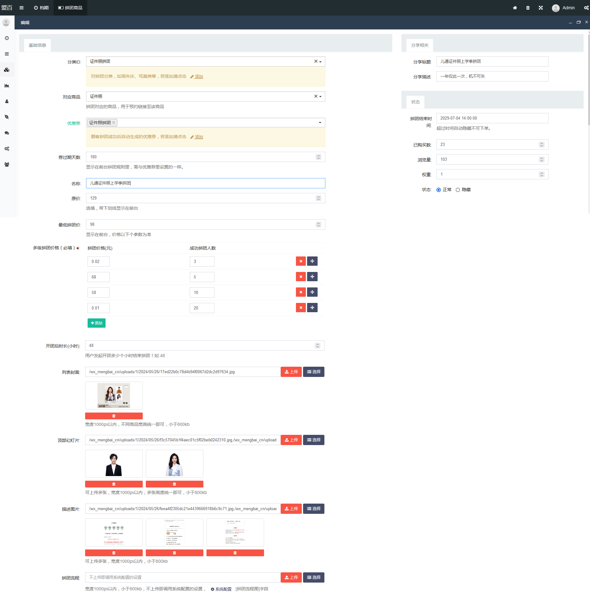 | 本次主要新增多級拼團模塊和其他優化。 / 多級拼團功能介紹 / 多級拼團對于有一定粉絲的公眾號,絕對是營銷利器,可以預售拍攝券,達到提前預收資金,支持活動結束倒計時,團單結束倒計時,不同目標成團人數價格不一樣,成團立即生成抵用券并發送通知給用戶,時間結束不成團自動退款并發送通知給用戶,后臺一鍵成團功能自動加虛擬份數,退款功能,統計功能等。 1. 后臺界面展示 拼團商品列表 添加拼團商品 拼團訂單列表,可根據條件統計銷量和退款等 2. 前臺界面展示 拼團列表 拼團詳情頁 支付后派發給朋友或者朋友圈頁面 拼團訂單列表頁 訂單詳情頁 /其它更新 / 1、新增拍攝訂單狀態新增服務中,后臺不同賬號默認訂單列表可設置不一樣。2、優化切換門店列表展示,新增客服鏈接按鈕,如鏈接至企業微信。 3、商品列表頁新增可設置顯示或隱藏商品標題和分類名稱。 以上為僅為部分功能介紹,更多的功能請到本公眾號演示站體驗,或聯系以下微信號體驗后臺 |