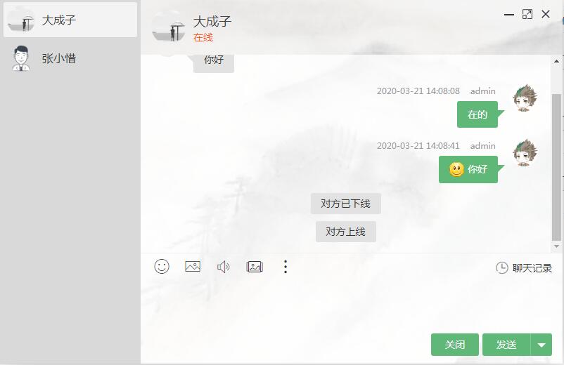即時溝通im2.0版【聊天面板】:可自動獲取客戶訂單底片。可隨意移動面板。:支持設置用戶組。方便同事間的溝通,列出最近聯系人。主面板固定在頁面的右下角,可最小化,如下圖::后臺用戶可根據需要可設置默認展開 ...